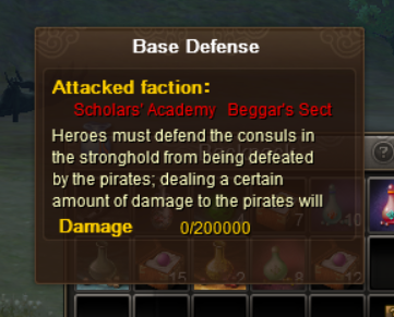 Sect bases get attacked during this time. Follow the game's instructions to fend off the attack, to earn Faction Points. If a sect base gets destroyed, the disciples from that sect will have to take their dailies from the Army Camp, and they cannot heal nearby at their own sect base anymore.